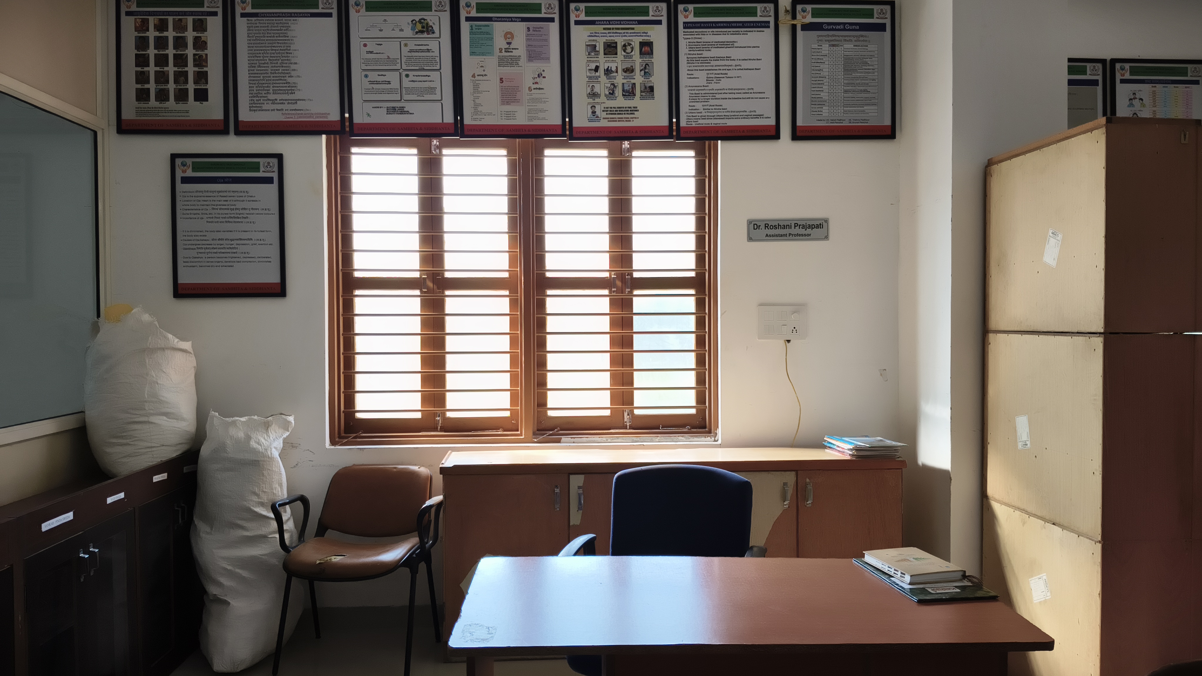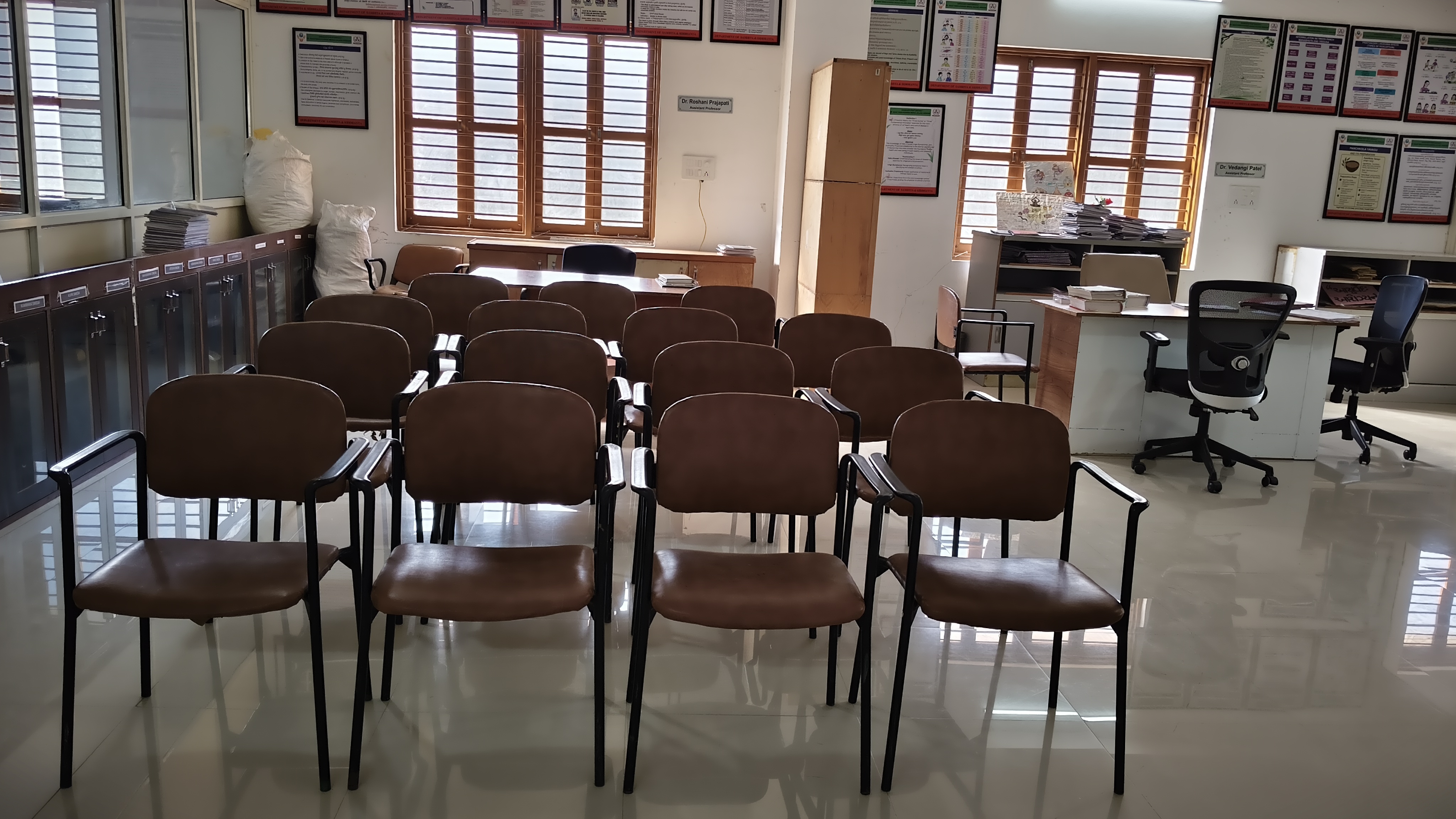 Samhita–Siddhanta department is the most important department of Ayurveda.Thisdepartment deals withthe studyofbasic principles ofAyurveda whichare described inclassicaltreatise i.e. AyurvedaSamhitas. Samhitas are basically written in Sanskrit hence for better understanding of samhita, Sanskrit is taught as a subject. This department connects to all 4 main examination of B.A.M.S course with subjects i.e. Sanskrit, Padartha vijnana& Ayurveda Itihas, Maulik Siddhanta evam Ashtanga Hridaya,Charak Samhita Purvardha &Uttarardha.These subjects are base of Ayurveda. All the Important knowledge regarding samhitas are given by Samhita- Siddhanta department.