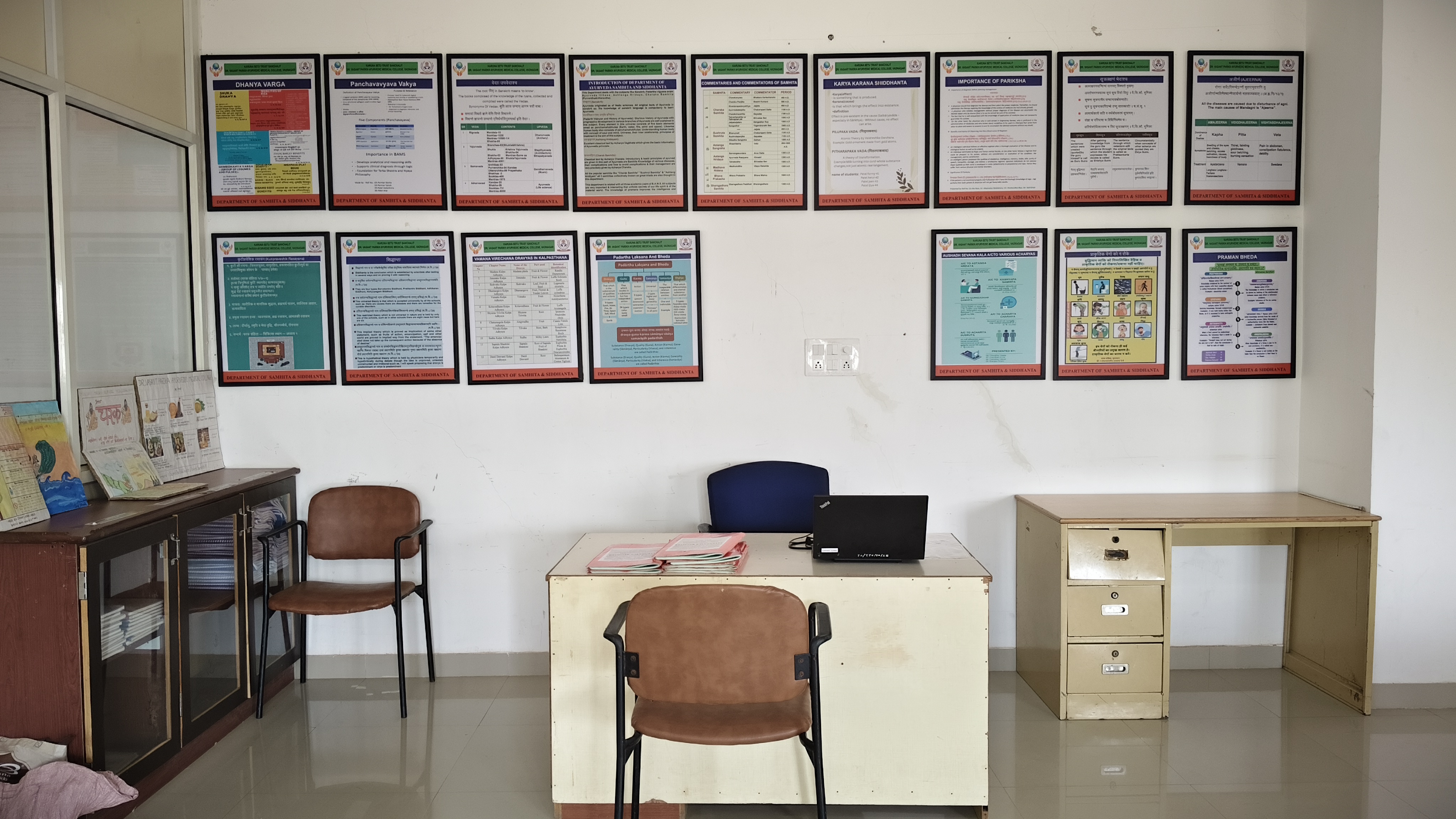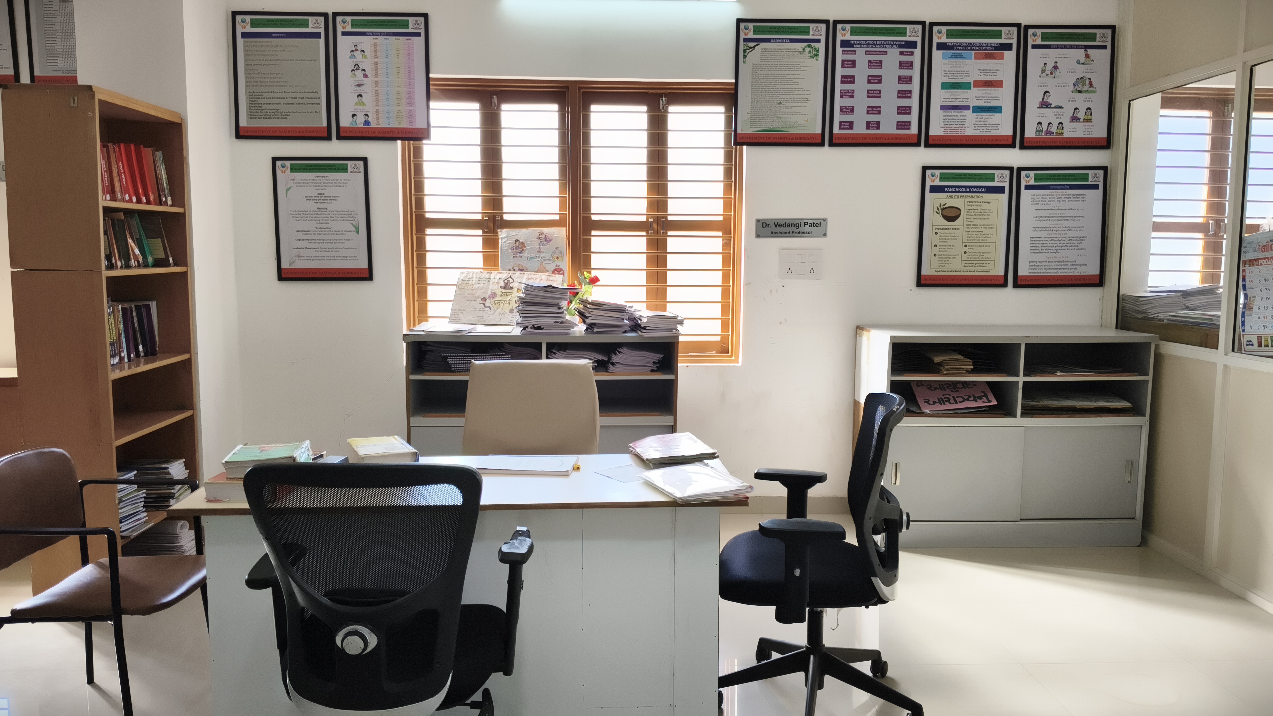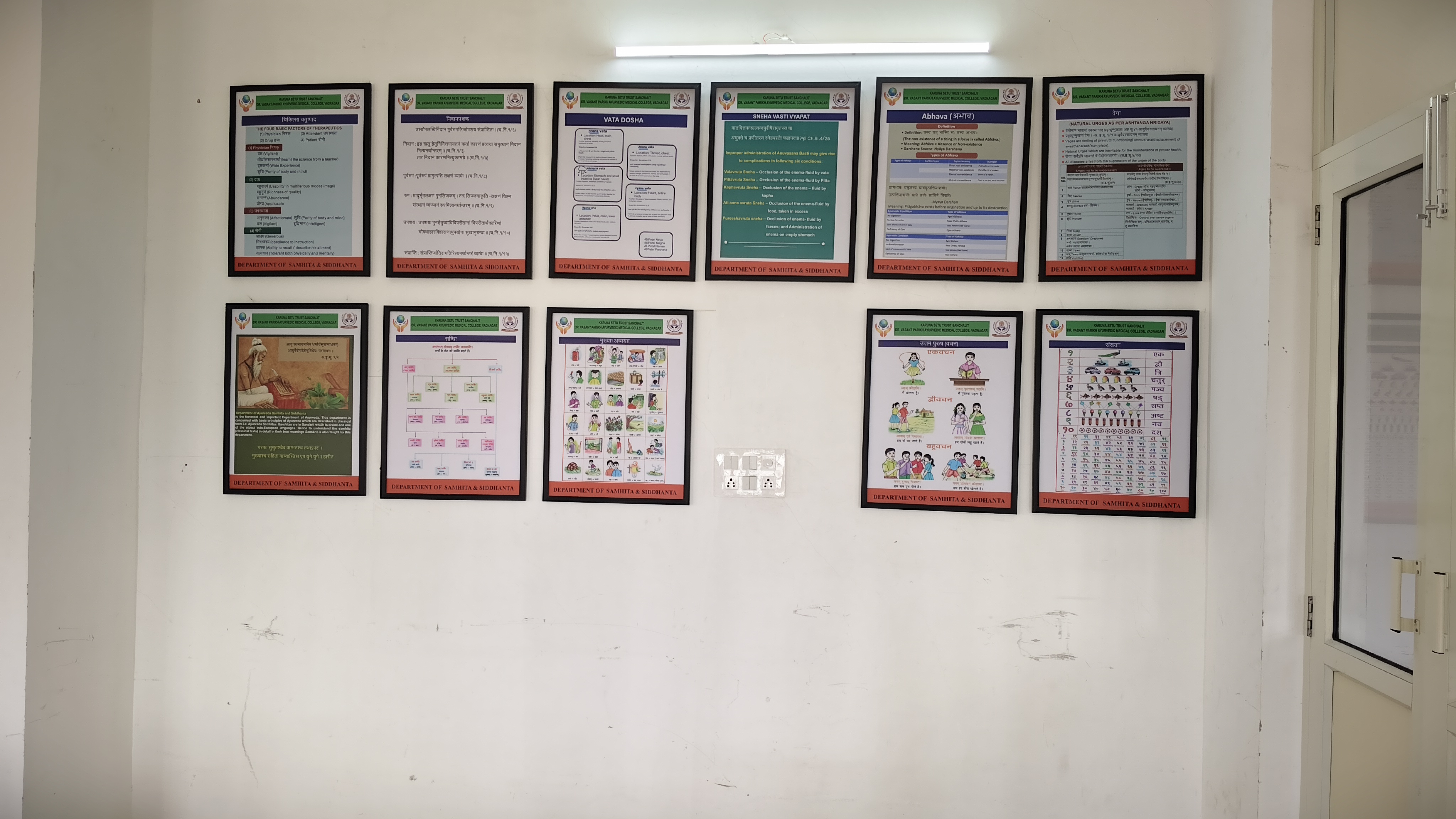 Samhita–Siddhanta department is the most important department of Ayurveda.Thisdepartment deals withthe studyofbasic principles ofAyurveda whichare described inclassicaltreatise i.e. AyurvedaSamhitas. Samhitas are basically written in Sanskrit hence for better understanding of samhita, Sanskrit is taught as a subject. This department connects to all 4 main examination of B.A.M.S course with subjects i.e. Sanskrit, Padartha vijnana& Ayurveda Itihas, Maulik Siddhanta evam Ashtanga Hridaya,Charak Samhita Purvardha &Uttarardha.These subjects are base of Ayurveda. All the Important knowledge regarding samhitas are given by Samhita- Siddhanta department.